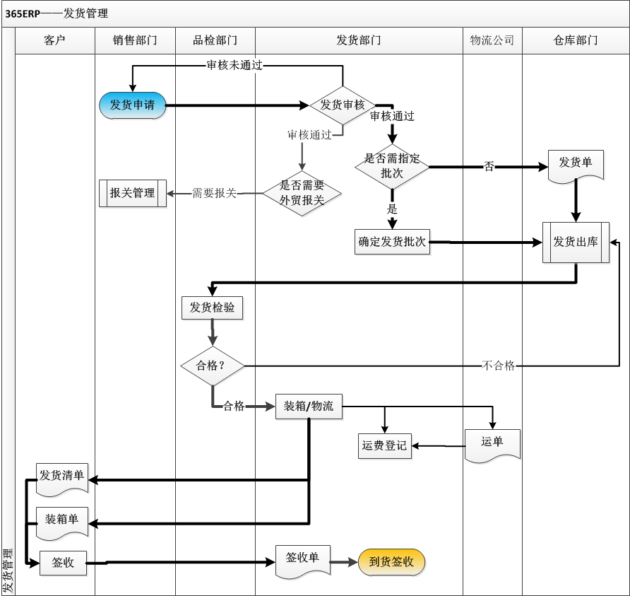 2. 发货部门收到发货申请,审核通过之后,交由发货专员负责发货办理(装箱、运输),负责库存跟踪。